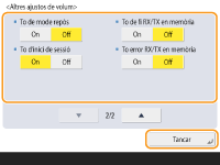<To de mode repòs> | So que s'emet quan l'equip entra en mode repòs o s'apaga si establiu <Opcions inici ràpid per l'alimentació principal> en <On>. (Depenent de les situacions, l'equip no s'inicia ràpidament i el to no sona.) |