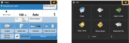 A la pantalla <Inici>, premeu els botons de funció per mostrar la pantalla de Funcions bàsiques on podeu accedir a funcions bàsiques com ara copiar, enviar faxos i llegir. Tot i que la visualització i els elements de configuració de la pantalla de funcions bàsiques són diferents segons les funcions, podeu canviar les opcions d'acord amb les vostres necessitats.