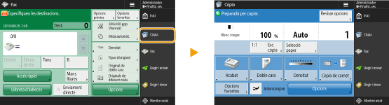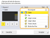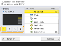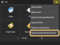 Podeu crear un botó de drecera per a les funcions a la pantalla <Inici>. Utilitzeu aquest botó per accedir a una funció diferent sense tornar a la pantalla <Inici>. Per crear una drecera, inicieu sessió amb privilegis d'administrador.