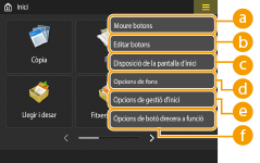 Segons la configuració de <Permetre personalització pantalla d'inici per ús comú> i els privilegis de l'usuari amb inici de sessió, es pot mostrar una pantalla per seleccionar <Personalitzar per ús personal> o <Personalitzar per ús comú> quan es selecciona <Moure botons>, <Editar botons>, <Disposició de la pantalla d'inici> o <Opcions de fons>.