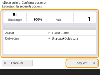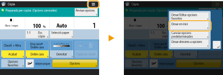 i especifiqueu les opcions de còpia. La pantalla <Inici>