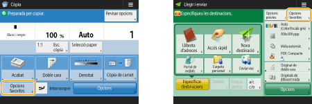 Si utilitzeu amb freqüència la mateixa combinació d'opcions per a la còpia, fax i lectura, convé tenir aquestes opcions desades com a <Opcions favorites>.