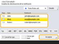 Notificació de la finalització de la còpia per correu electrònic
