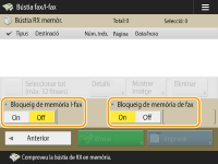 Seleccioneu <Bústia RX en memòria> i establiu <Bloqueig de memòria de fax> en <On>.
