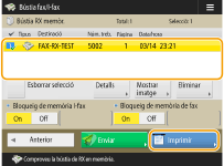 | | Podeu desar documents entrants a la ubicació d'emmagatzematge (bústia de recepció en memòria) de l'equip sense imprimir-los. Si imprimiu només allò que necessiteu i elimineu els documents innecessaris, com missatges directes, de la bústia de recepció en memòria, podeu estalviar paper. |