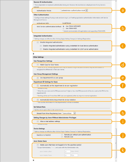 Seleccioneu la casella per assignar automàticament un ID de departament quan deseu/editeu un usuari mitjançant Remote UI (IU remot). Si ja s'ha assignat un ID de departament no se n'assignarà un de nou. Aquesta opció només es pot especificar mitjançant Remote UI (IU remot).