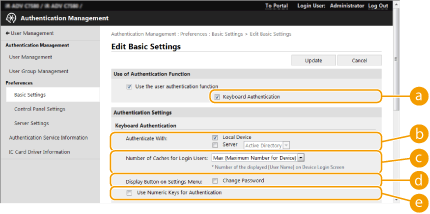 Configureu les opcions següents quan utilitzeu l'autenticació mitjançant el teclat.