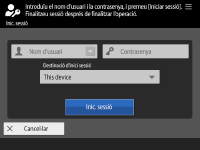| | Amb aquest mètode, els usuaris inicien sessió introduint el seu nom d'usuari i la seva contrasenya utilitzant el teclat que apareix al tauler de control. Aquest mètode està disponible independentment del dispositiu d'autenticació que s'utilitzi. |