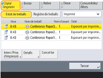 Si premeu <Detalls> després de seleccionar un document, podeu cancel·lar la impressió, comprovar l'estat del treball, etc.