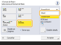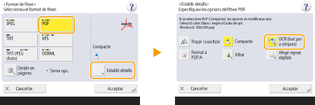 1 | Seleccioneu <PDF> premeu <Establir detalls> <OCR (text per a cerques)>.![]() |