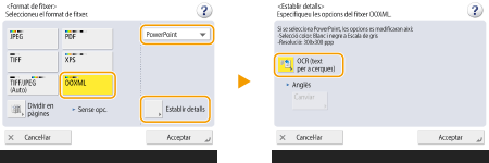 1 | Seleccioneu <OOXML> seleccioneu <PowerPoint> a la llista desplegable. premeu <Establir detalls> <OCR (text per a cerques)>.![]() |