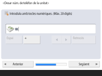Especifiqueu les opcions necessàries per utilitzar la funció de fax. ![]() Si el producte opcional necessari per a l'enviament per fax (Opcions del sistema) no està instal·lat, aneu al pas 10. Seleccioneu el país/la regió si apareix la pantalla de selecció i premeu <Següent>. ![]() ![]() Introduïu el número de fax i premeu <Següent>. Per obtenir informació sobre les opcions de fax, vegeu Opcions de línia de fax. ![]() ![]() Premeu <Establir>, introduïu el nom d'usuari i premeu <Següent>. ![]() ![]() Seleccioneu el tipus de línia i premeu <Bé>. | |