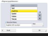 Jazyk zobrazovaný na displeji dotekového panelu a klávesnici můžete měnit.