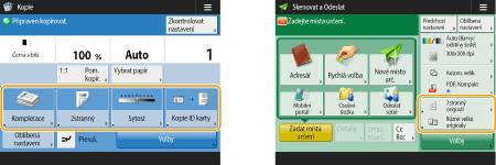 Tlačítka nastavení, která se zobrazují na obrazovce základních funkcí (pro kopírování, faxování a skenování), můžete změnit. Můžete také zobrazit jinou obrazovku základní ch funkcí, která bude přizpůsobená pro každého přihlášeného uživatele.