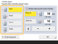 ![]() | Na kopiích můžete vytvořit okraje pro sešívání nebo děrování otvorů. Okraje pro vazbu můžete pro přední stranu a zadní stranu listů nastavit samostatně. |