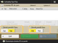Vyberte <Schránka PŘ. do pam.> a nastavte <Zámek paměti faxu> na <Zap>.