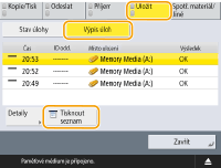 K dispozici jsou dva typy úložišť vytištěné jako protokol. Pokud je splněna jedna z následujících podmínek, vytiskne se odpovídající úložiště. Paměťové médium: Pokud jsou data uložena v odnímatelném médiu, například USB nosiči, z <Skenovat a Uložit> Síť: Pokdu jsou data uložena v Rozšířená schránka u další řady imageRUNNER ADVANCE z <Skenovat a Uložit> |