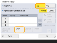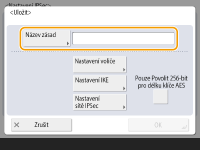 1 | Stiskněte <Nastavení sítě IPSec>. | ||||||