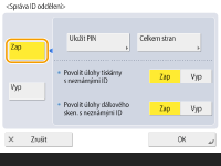 Informace o číslech ID oddělení, která můžete registrovat, naleznete v kapitole Funkce správy. |