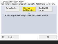 Osobní složka je složka sdílená na následujících obrazovkách. <Skenovat a Odeslat> <Síť> v <Skenovat a Uložit> <Síť> v <Přístup k uloženým souborům> |