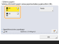 Jos <Vahvista asetettaessa paperia paperikasettiin> -asetus on <Ei>, paina