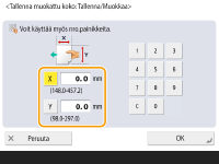 Määritä <X>- ja <Y>-sivun pituus. Valitse kummankin sivun pituus numeropainikkeilla valitsemalla <X> tai <Y>.