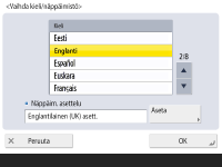 Voit vaihtaa kielen, joka näkyy kosketusnäytössä ja näppäimistössä.