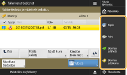 Toimintojen pikapainikkeet voidaan näyttää kullakin toimintonäytöllä. Usein käytettyjen toimintojen tallentaminen on kätevää, koska sitten toimintoja voi käyttää jatkuvasti palaamatta <Päävalikko>-näyttöön.