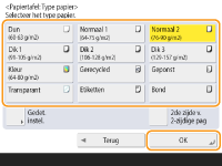 <OK>. Veelgebruikt papierformaat en -type voor de papiertafel opslaan