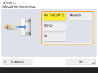 Als <Altijd opgeven> onder <Std.instell. l. papiertafel> wordt ingesteld op <Favoriete papier>, wordt er een scherm weergegeven waarop u uw favoriete papier kunt selecteren wanneer u het papier in de multifunctionele lade plaatst. <Std.instell. l. papiertafel> |