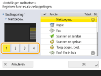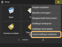U kunt een snelkoppeling aanmaken voor de functies op het <Home>-scherm. Gebruik deze knop om een andere functie te openen zonder terug te gaan naar het <Home>-scherm. Om een snelkoppeling aan te maken, meldt u zich aan met beheerdersbevoegdheden.