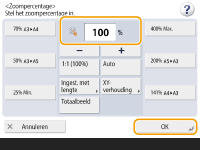 ![]() | U kunt een origineel vergroten of verkleinen door het zoompercentage (%) op te geven. U kunt de verticale en horizontale zoompercentages afzonderlijk opgeven. Kopieën vergroten of verkleinen door opgave van het zoompercentage | |