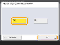 ![]() | U kunt voorkomen dat gevoelige of persoonlijke gegevens uit het adresboek worden gelekt door een pincode in te stellen of door te voorkomen dat bepaalde bestemmingen in het adresboek worden weergegeven. U kunt ook het adresboek zelf verbergen. Beheerdersbevoegdheden zijn nodig om deze instellingen te kunnen configureren. |