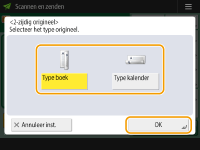 Selecteer <Type boek> of <Type kalender> en druk op <OK>.