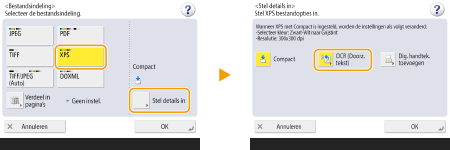 1 | Selecteer <XPS> en druk op <Stel details in> <OCR (Doorzoekbare tekst)>.![]() |