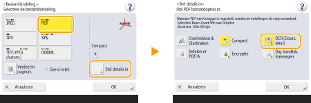 1 | Selecteer <PDF> en druk op <Stel details in> <OCR (Doorz. tekst)>.![]() |