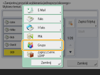 Odbiorcy zarejestrowani pod klawiszami wybierania jednoprzyciskowego mogą być połączeni w grupę, a grupa zarejestrowana jako pojedynczy odbiorca.
