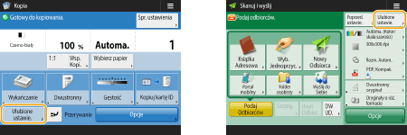 Możesz zmienić przyciski ustawień wyświetlane na ekranach Podstawowych funkcji (dla kopiowania, faksowania i skanowania). Istnieje również możliwość wyświetlania innego, spersonalizowanego ekranu Podstawowych funkcji dla każdego zalogowanego użytkownika.