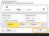 | | Można przywołać ostatnio wykorzystywane ustawienia kopiowania. Szczegóły dla przywołanych ustawień można zmienić przed rozpoczęciem kopiowania. |