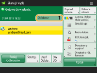 Ekran Podstawowych funkcji skanowaniaOkreślanie odbiorców z Książki adresowej