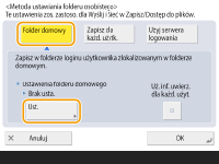 <OK>. Każdy z użytkowników może określić lokalizację katalogu prywatnego.1 | Naciśnij kolejno opcje <Folder domowy> <Ustaw>.![]() |
