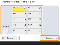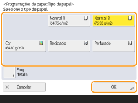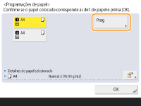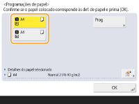 Se o tipo de papel colocado não for apresentado, carregue em <Prog. detalh.> para o selecionar a partir de uma lista.