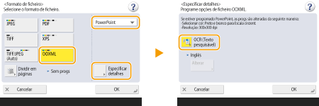 1 | Selecione <OOXML> selecione <PowerPoint> na lista pendente. carregue em <Especificar detalhes> <OCR (Texto pesquisável)>.![]() |
