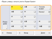 Нажмите кнопку <X> или <Y>, чтобы ввести значение длины каждой стороны с помощью цифровых клавиш. ![]() Если кнопкам <S1>–<S4> назначены часто используемые форматы бумаги, то требуемый формат бумаги можно задать одним нажатием соответствующей кнопки. Регистрация бумаги произвольного формата (Бумаги пользовательского формата) | |