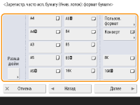 Нажмите кнопку <X> или <Y>, чтобы ввести значение длины каждой стороны с помощью цифровых клавиш. ![]() Если кнопкам <S1>–<S4> назначены часто используемые форматы бумаги, то требуемый формат бумаги можно задать одним нажатием соответствующей кнопки. Регистрация бумаги произвольного формата (Бумаги пользовательского формата) | |