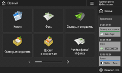 На экране <Главный> нажмите любую кнопку функции, чтобы отобразить экран основных функций, на котором можно выбрать такие основные функции аппарата, как копирование, сканирование, а также отправка и получение факсов. Несмотря на то что внешний вид экрана основных функций и пункты настройки на нем различаются для каждой функции, эти параметры можно изменять в соответствии с потребностями.
