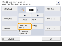 ![]() | Увеличить или уменьшить масштаб копии можно путем задания окончательных размеров, чтобы выводимое изображение уместилось в заданных размерах. Такие размеры можно указать отдельно по вертикали и по горизонтали. Увеличение или уменьшение масштаба копий путем указания размеров | |