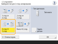 В режиме <Книга 2 стороны> можно использовать только бумагу формата A4.При использовании режима <Книга 2 стороны> устанавливайте оригиналы на стекло экспонирования. |