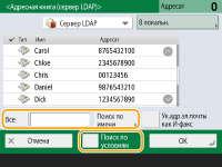 При поиске адресатов, зарегистрированных на сервере LDAP, нажмите <Поиск по имени> или <Поиск по условиям>.