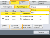 Для документов, отправленных по электронной почте, в списке приводятся результаты передачи данных между аппаратом и почтовым сервером, а не между аппаратом и адресатом. При выборе <Вывод. указ. числа пер.> в шаге 3 можно указать количество результатов журнала, отображаемых в списке. Можно также указать, следует ли печатать список автоматически. |